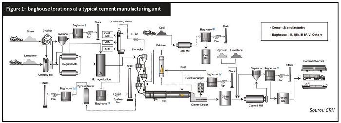 figure 1, the typical cement manufacturing and baghouse, there are about 6