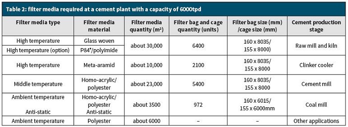 that the filter media quantity in a cement plant, which capacity is 6000 ton