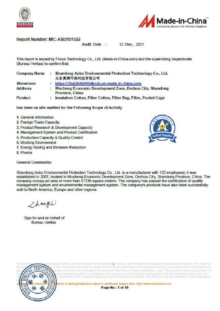 Congrats ! Shandong Aobo award the AUDITED SUPPLIER