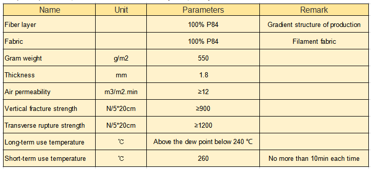 1. The P84 fiber itself has an ultra-thin diameter, excellent high temperature resistance,  irregular cross-section of the fiber, due to which the surface of the fiber is maximized provides many tiny pores, so that the low resistance P84 dust filter bag good dust removal efficiency.