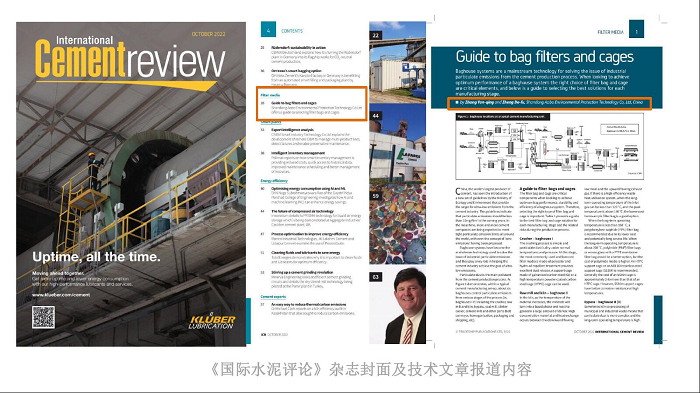 山東奧博環(huán)保公司提供的技術(shù)文章“水泥行業(yè)濾袋和袋籠選用指南”引起了國內(nèi)外水泥行業(yè)的關(guān)注,成功入選英國《國際水泥評論》雜志第10期,這是《國際水泥評論》本期期刊中唯一在列的中國技術(shù)文章。全球水泥行業(yè)最具權(quán)威性的主流媒體的肯定,意味著山東奧博環(huán)保的提供濾袋與袋籠技術(shù)進入新的高度,引領(lǐng)水泥收塵行業(yè)的過濾技術(shù)發(fā)展。