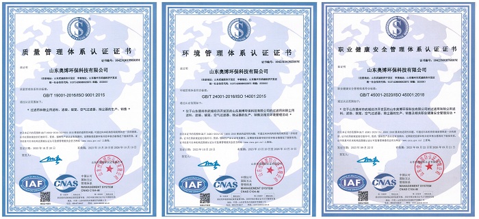 近日,山東奧博環(huán)保公司順利續(xù)證通過(guò)ISO三體系審核,喜獲ISO9001質(zhì)量管理體系、ISO14001環(huán)境管理體系及ISO45001職業(yè)健康安全管理體系認(rèn)證證書。
