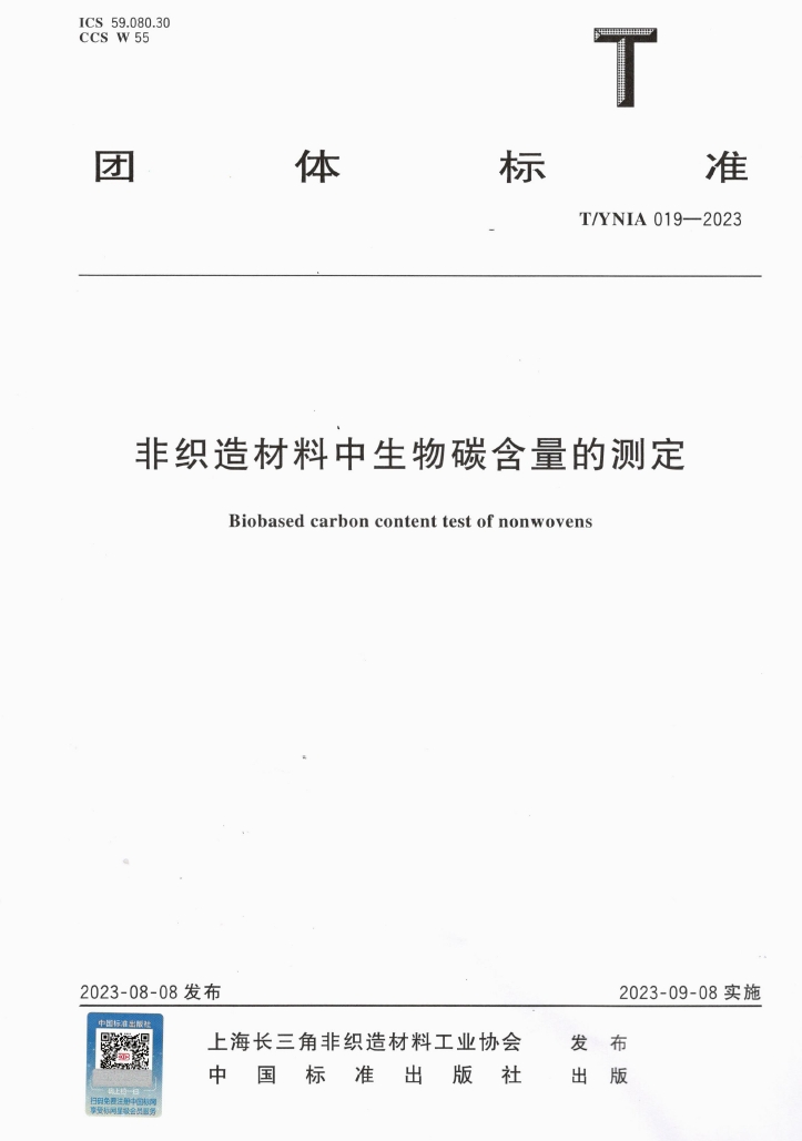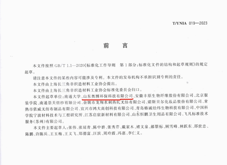 T/YNIA019-2023《非織造材料中生物碳含量的測定》由上海長三角非織造材料工業(yè)協(xié)會權(quán)威發(fā)布,山東奧博環(huán)保科技有限公司為主要完成單位。