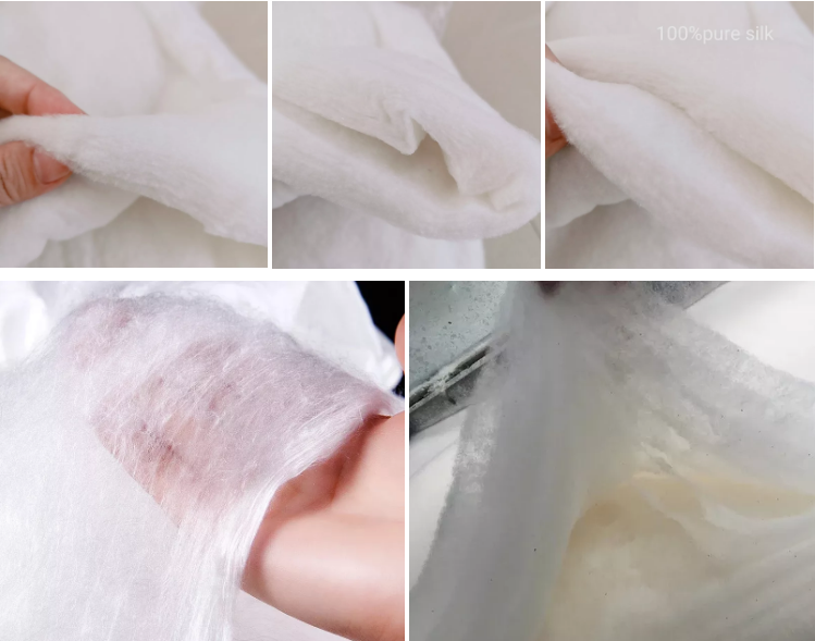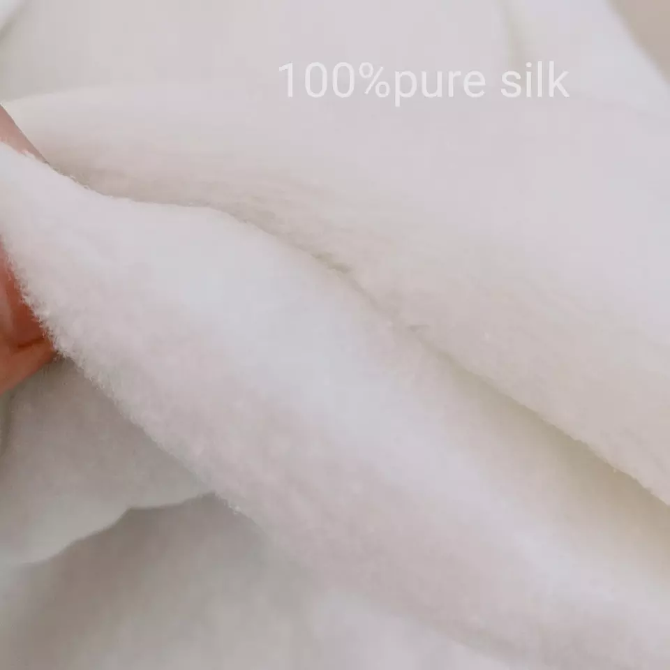 Наша вата из 100% шелка тутового шелкопряда обеспечивает непревзойденный комфорт, натуральную мягкость и премиальное качество, делая её идеальным выбором для роскошных текстильных изделий для дома.